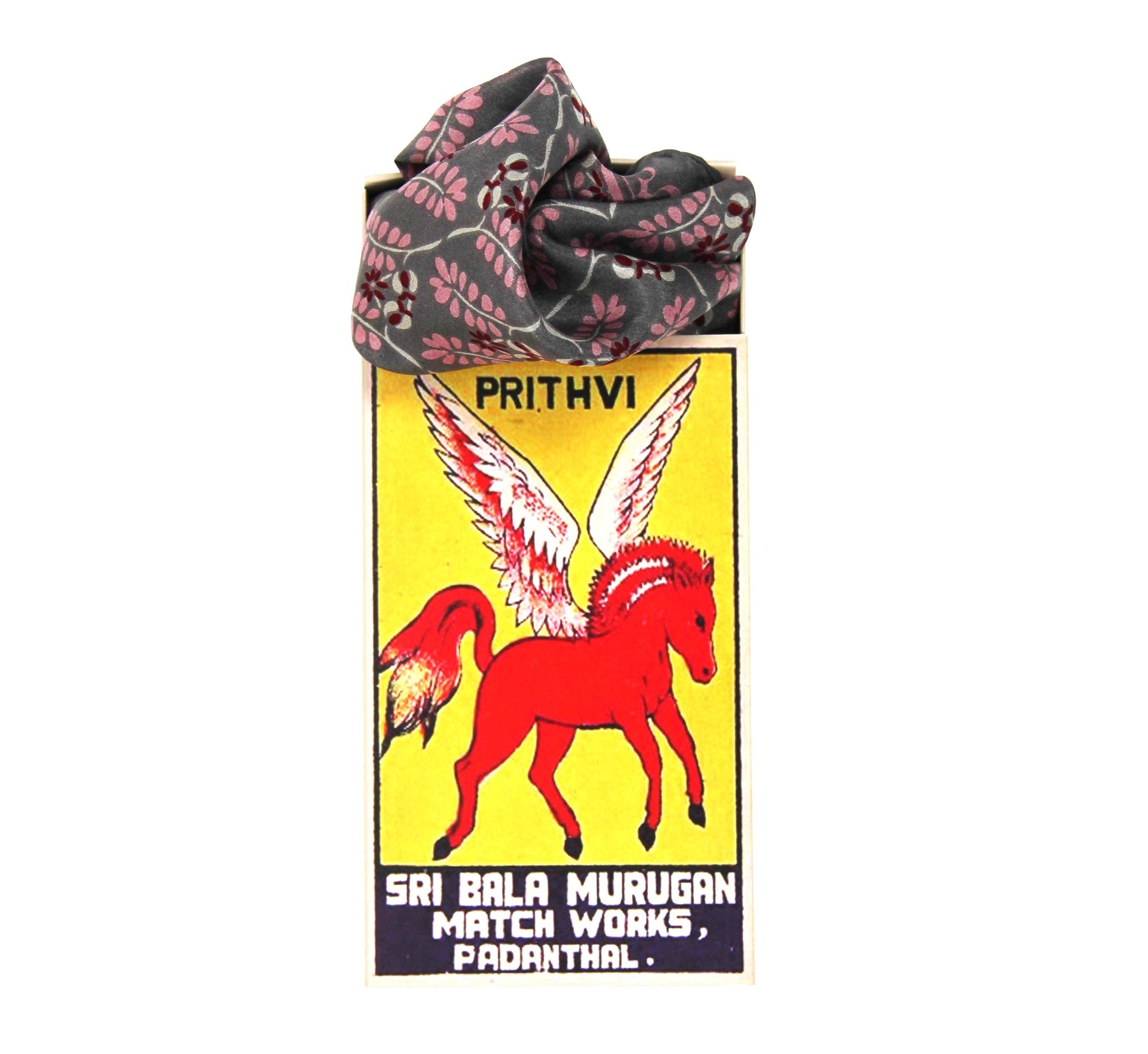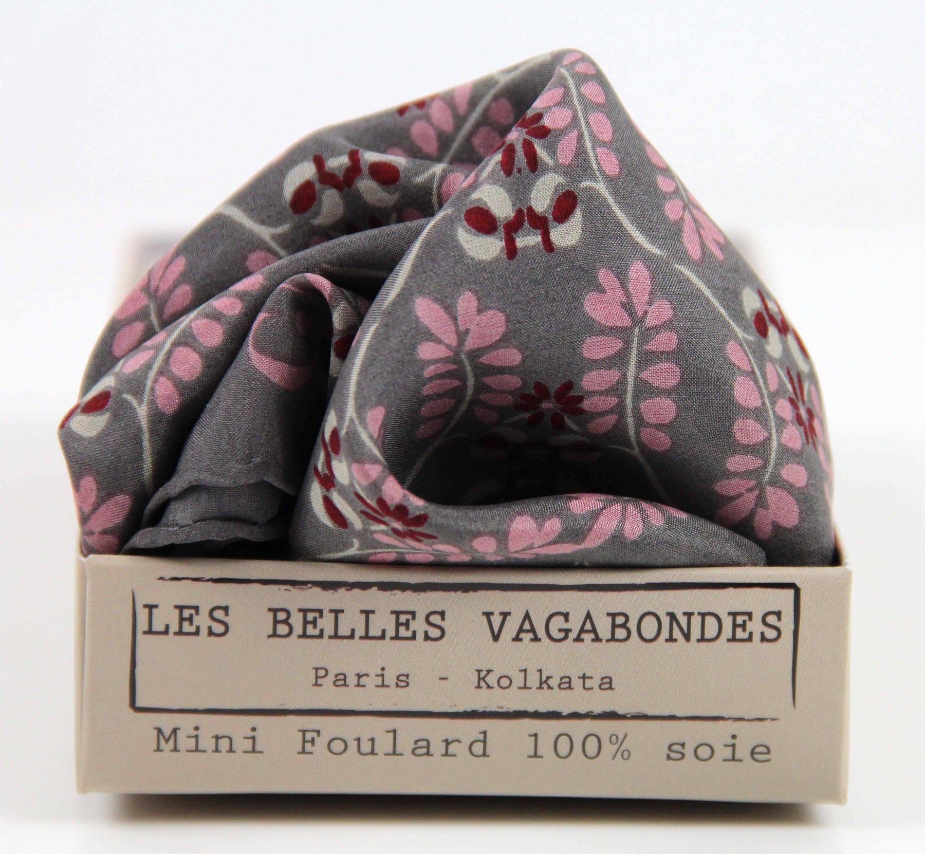 Mini Scarves make an original gift, they can be worn around the neck, around the wrist, as a headband, in a bun or even around the bag... They are drawn by hand in France and printed by hand in India. They have an exceptional finish with a hand-rolled hem. They are sold in a box inspired by vintage matchboxes. 100% silk 50 x 50 cm Hand drawn in France Hand printed in India